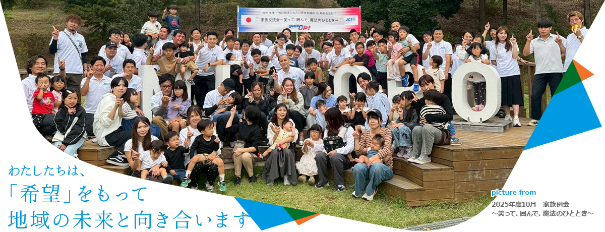 加古川青年会議所とはaboutJCI理念加古川青年会議所について2025年度理事長所信役員・メンバー紹介officer & member役員事務局渉外⽀援委員会会員拡大委員会広報戦略委員会交流委員会研鑽委員会⻘少年育成委員会地域活性化委員会活動報告activityお知らせinformationメディア情報スケジュールトピックス一覧入会案内admission