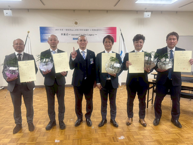 卒業式においては今年度6名の卒業となりましたが、卒業生一人ひとりからこれまでの活動への想い、仲間への感謝、そして今後の加古川青年会議所への期待が語られ、会場は多くの気づきと感動に包まれました。現役メンバーにとっては、先輩たちが築き上げてきた歴史と伝統の重みを再認識するとともに、次代の担い手としてより一層の成長を誓う機会となりました。